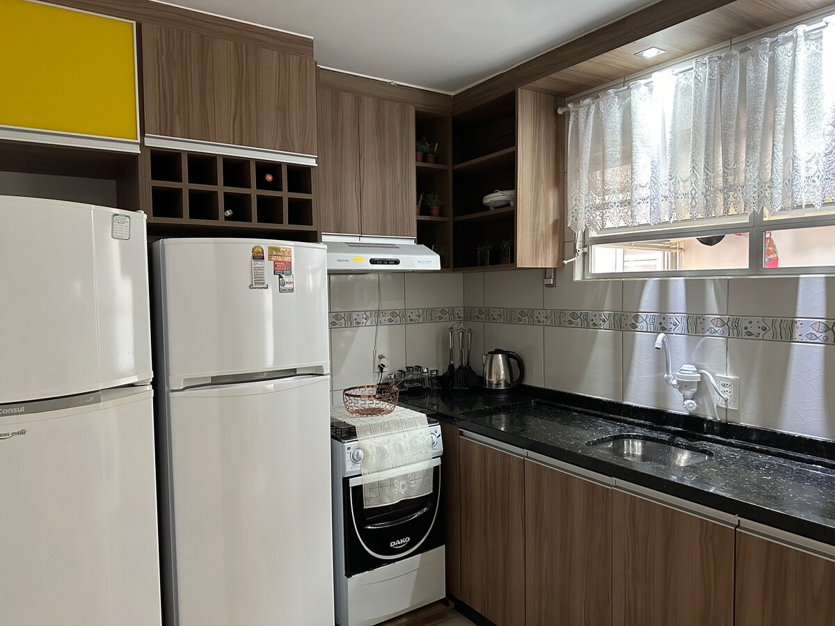 Modernus, pilnas ir balkone galite pajusti jūros vėją, nes butas yra vos už 250 m nuo paplūdimio! Naujas butas su patalyne, 1 liukso numeriu ir 1 labai jaukiu kambariu, dideliu kambariu, įrengta virtuve ir privačia kepsnine. Kondominiumas su baseinu, žaidimų aikštele ir dengta automobilių stovėjimo vieta. Puikiai tinka mėgautis komfortu, stiliumi ir praktiškumu, taip pat būti netoli restoranų, turgų ir visko, ko reikia nepamirštamai viešnagei!
