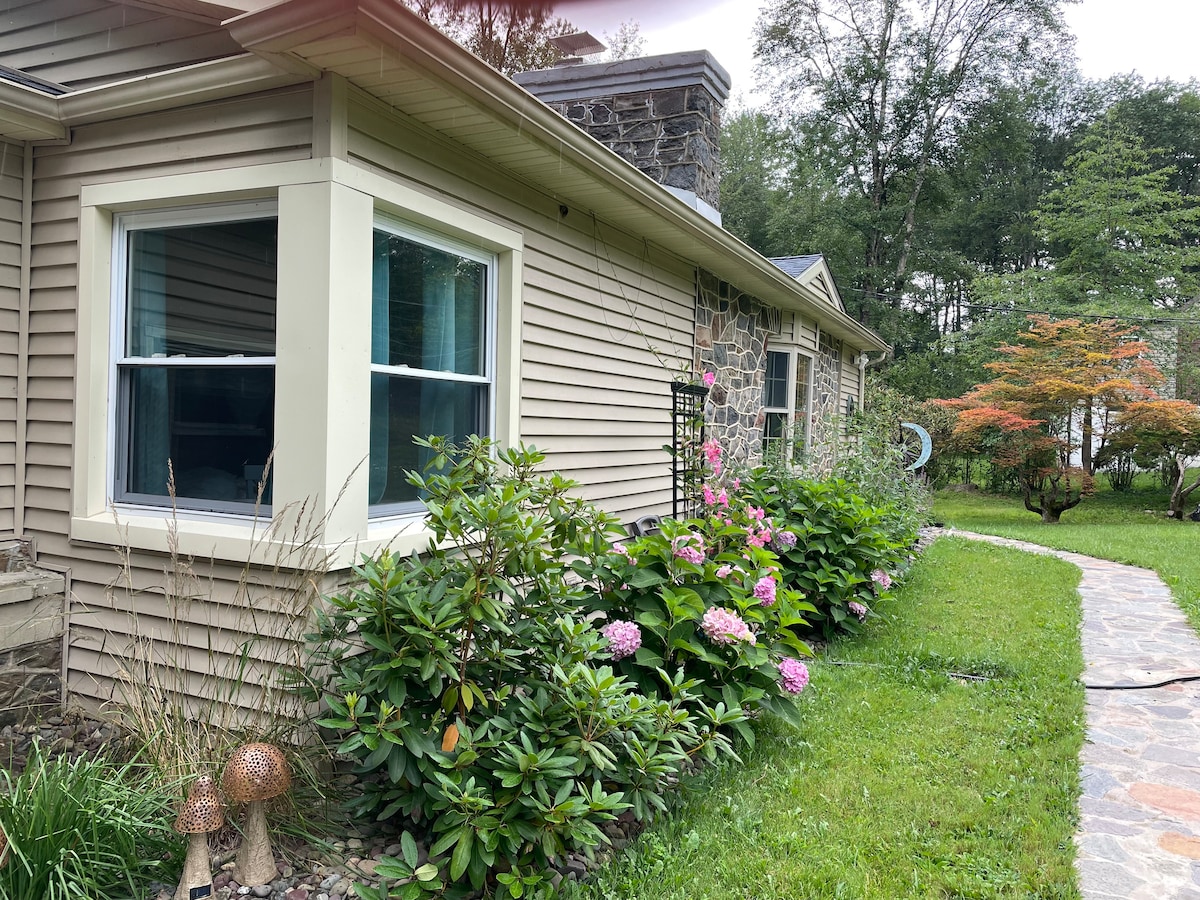 5 min. kelio automobiliu iki Jim Thorpe ~ Sveiki atvykę į skraidantį vėžlių kotedžą. Šis žavingas namas prie ežero ribojasi su Mauch Chunk ežero parku - žvejyba, plaukimas, plaukimas baidarėmis ir irklenčių sportas. Vaizdinga kelionė į Jim Thorpe parduotuvių širdį, restoranai, pramogos, žygiai pėsčiomis/plaustais, muziejai, pasivažinėjimas traukiniu. 30 minučių iki Pocono Raceway, Kalahari, slidinėjimo, Pocono atrakcionų. 2 miegamieji, 1 vonios ranča. Didelė terasa/laužavietė/ lauko dušas.