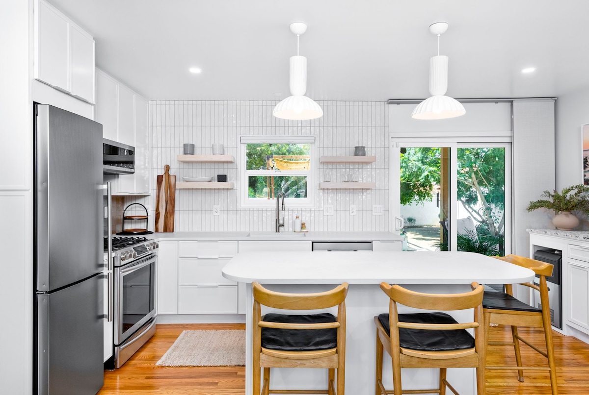 Sveiki atvykę į Tamarack Palms 🌴 Mūsų visiškai renovuotas prabangus paplūdimio būstas 7000 kv. pėdų plote, papuoštas klasikinėmis Pietų Kalifornijos palmėmis, vos už 10 minučių kelio pėsčiomis nuo paplūdimio. Patirkite pakrantės Karlsbado gyvenimo būdą šiuose visiškai naujuose 3 lovų, 2 vonios namuose, pripildytuose natūralios šviesos ir kruopščių detalių. Mėgaukitės erdviomis, atviromis erdvėmis ir stulbinančia pramogų pasaulio virtuve su kvarciniais stalviršiais, kratytuvų spintelėmis, komercinės klasės prietaisais ir visais namų patogumais.
