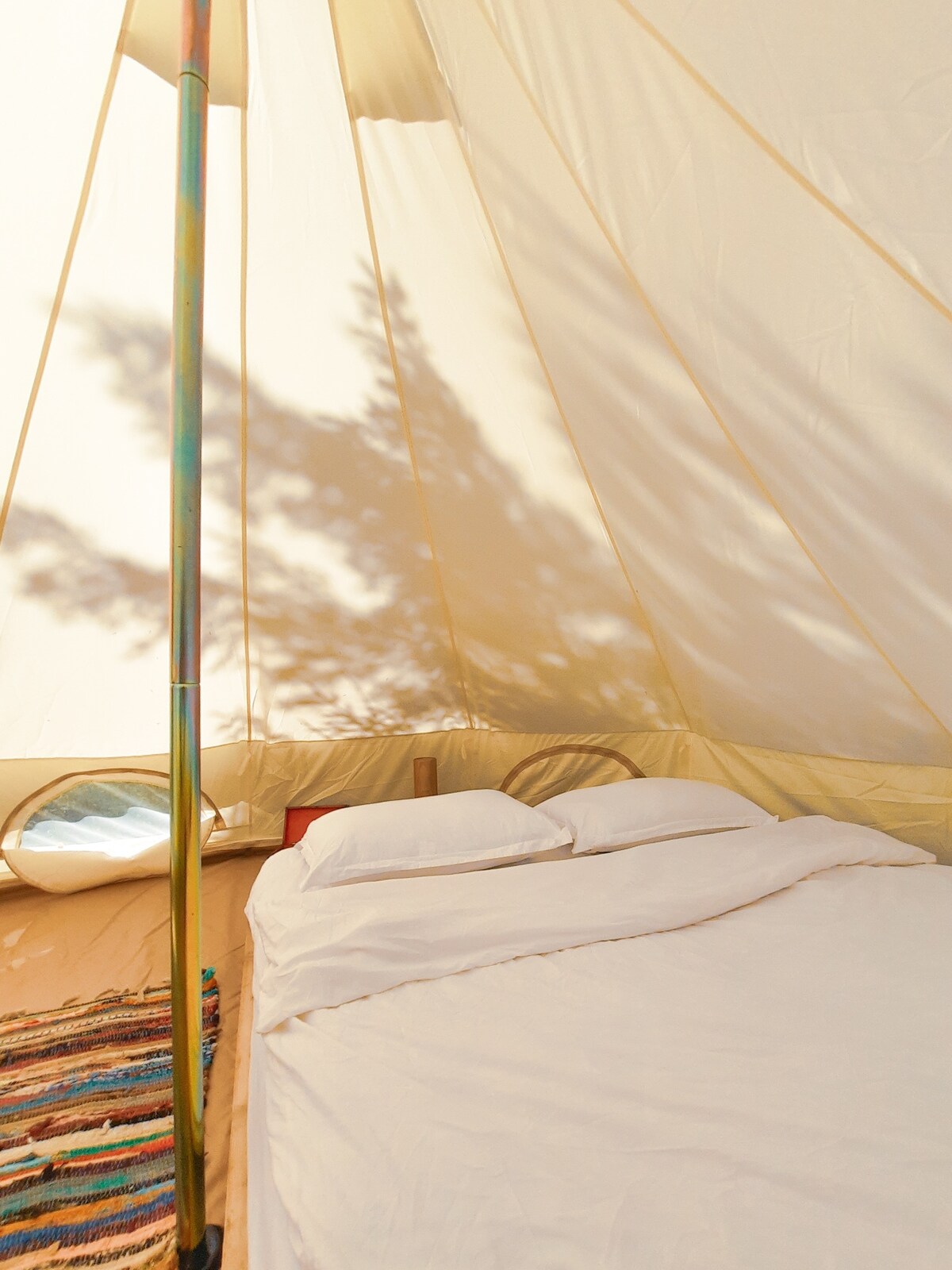 Jūsų vaikai visada norėjo stovyklauti, bet jūs nesate gerbėjas? Mūsų glempingo palapinė yra puikus sprendimas. Palapinė yra unikali, joje yra visos įprastos lovos, privatus vonios kambarys su tualetu ir dušu bei maža privati virtuvė. Vonios kambarys ir virtuvė yra ant privačios platformos, ant kurios yra palapinė. Tai reiškia, kad iš tikrųjų turite privačią terasą su pikniko stalu ir skėčiu, kur galėsite mėgautis ramiu kraštovaizdžiu.