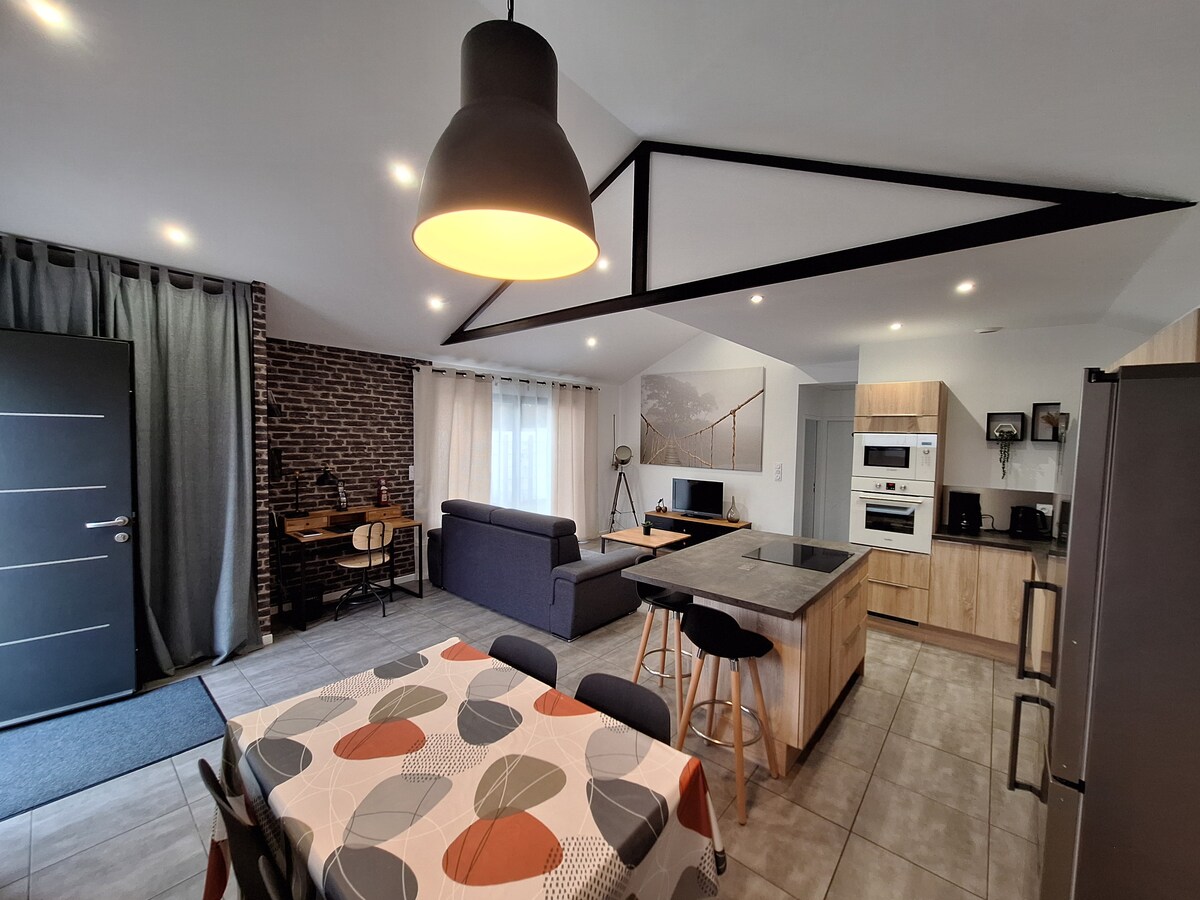 Ateikite ir mėgaukitės šiuo visiškai renovuotu T2 2024 m., miškingoje ir ramioje Carquefou vietovėje, netoli didelio parko ir viešojo transporto, kuris nuveš jus į kunigaikščių miestą. Įsikurkite svetainėje su išmaniuoju televizoriumi, Netflix, šviesolaidiniu Wi-Fi. Pilnai įrengta virtuvė sužavės jus savo baru, gruzdintuvu ir viskuo, ko reikia maistui paruošti. Miegamajame sėdimoji / stovinti biuro erdvė puikiai tinka nuotoliniam darbui. Į kainą įskaičiuota lova ir vonios patalynė