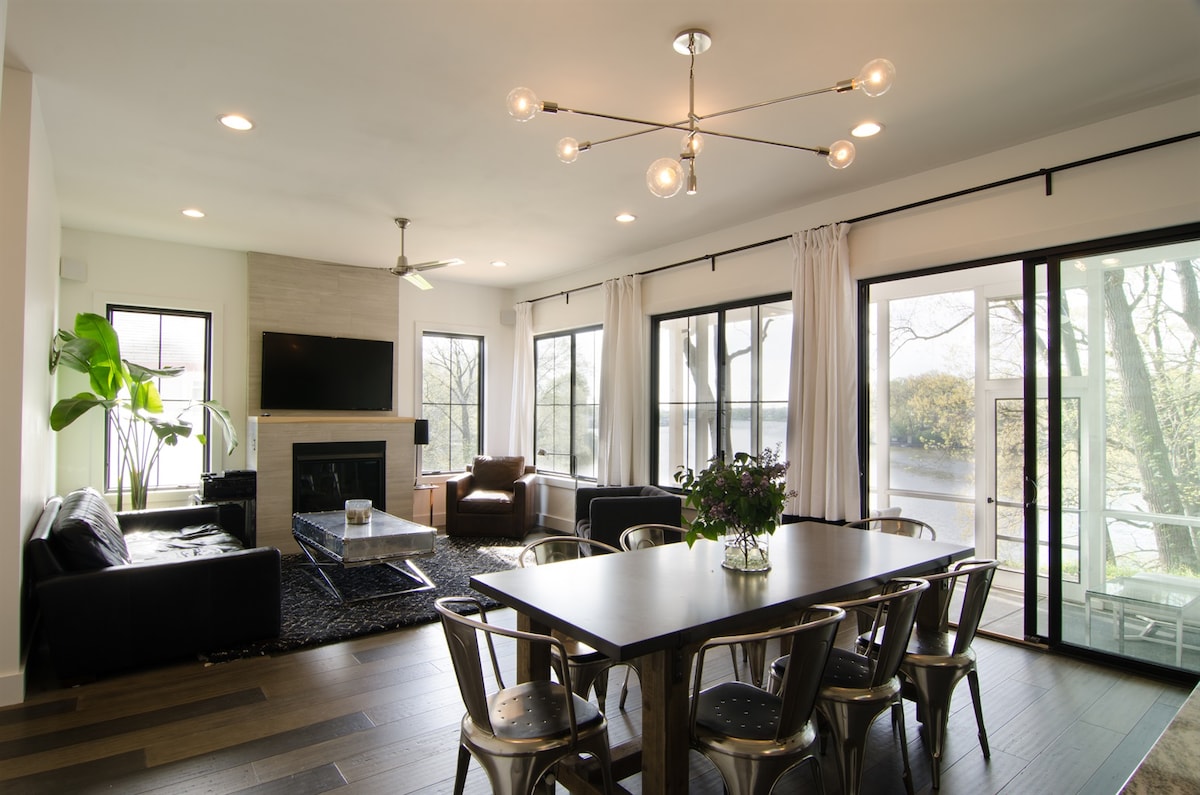Waterfront Lake Shafer | Sūkurinė vonia + židinys