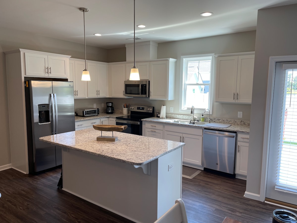 Žavingi svečių namai istoriniame Boforte. Du kvartalai nuo Front St su parduotuvėmis, restoranais, gražiais laivais ir krantine! Privati automobilių stovėjimo aikštelė ir prieiga mūriniu taku, apsuptas angliško sodo. Viduje rasite erdvią svetainę su 50colių televizoriumi, virtuvę, pilną vonią su plytelėmis išklotu stikliniu dušu ir erdvų miegamąjį su įrengtu dviaukščiu kambariu. Yra privatus vidinis kiemas su sėdimomis vietomis, laužavietė ir vieša prieplauka už 3 namų žvejybai, krabų rinkimui, pasiplaukiojimui baidarėmis ir plaukimui!