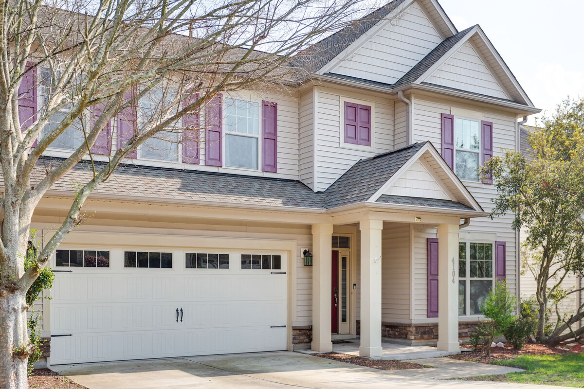 Mėgaukitės nepamirštamais prisiminimais šiuose erdviuose, gražiai suprojektuotuose namuose jums ir 9 svečiams! Puikiai tinka šeimos susibūrimams, sporto renginiams ir ypatingoms progoms. Įsikūręs Durhamo centro širdyje, vos už 4 minučių kelio nuo Duke, Bulls stadiono, DPAC ir Tabako tako. Jaukiai praleiskite laiką prie laužavietės, mėgaukitės kepsnine arba atsipalaiduokite su šviežiais spragėsiais ir vinilinėmis plokštelėmis. Išeikite į prabangias lovas + paklodes ir eikite į gurmanišką kavos barą AM. Nemokama prieiga prie netoliese esančios sporto salės su baseinu. Yra 4 pripučiami čiužiniai ir elektromobilio įkroviklis.
