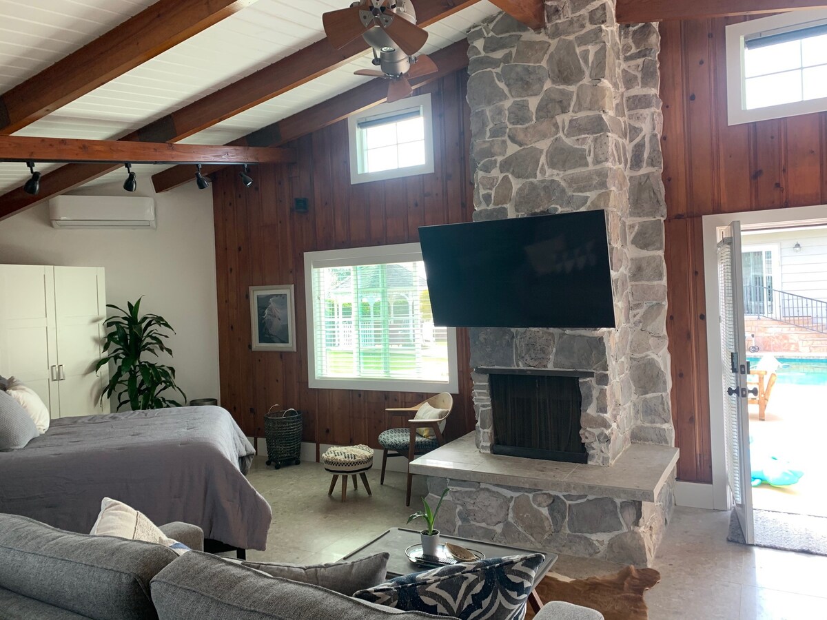 APRAŠYMAS: Atsipalaiduokite šioje jaukioje pertvarkytoje klėtyje su privačiu įėjimu ir saugiu berakčiu įėjimu. Patogiai miegokite ant „California King“ putų lovos ir mėgaukitės televizoriumi, „Blu-ray“ grotuvu ir darbo vieta. Klėtyje yra privatus vonios kambarys su dušu, taip pat švieži rankšluosčiai ir patalynė. *Turime augintinį – nigerietišką nykštukinę ožką, kuri labai norėtų su jumis susipažinti! Ji leidžia laiką sode ir visada džiaugiasi lankytojais.