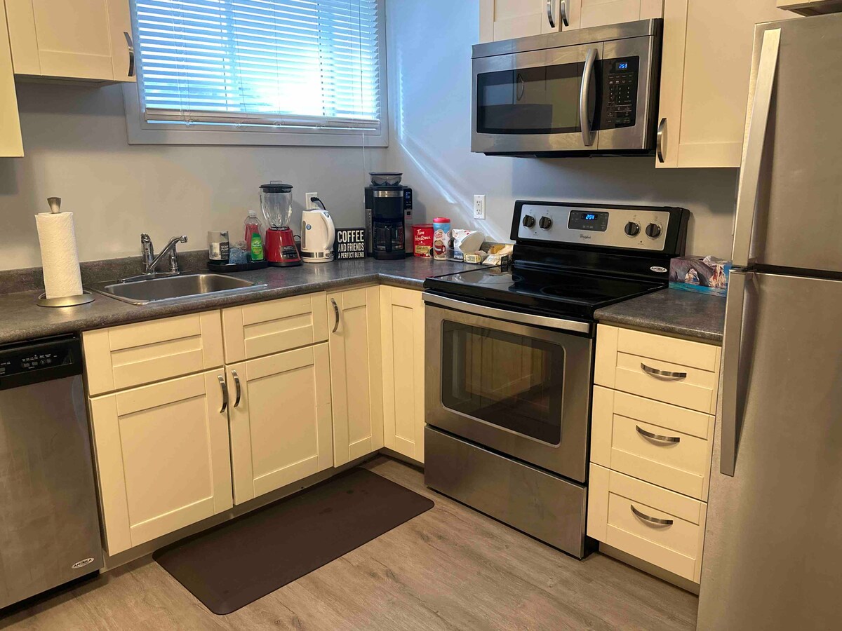Šis stilingas 1 miegamojo rūsio apartamentas puikiai tinka pavieniams keliautojams ar poroms, lankantiems Saskatuną. Įsikūrę saugiame ir patogiame rajone, būsite vos už kelių minučių kelio nuo geriausių restoranų, parduotuvių ir lankytinų vietų, kurias gali pasiūlyti miestas. Viduje rasite šviesią gyvenamąją erdvę, patogią dvigulę lovą, virtuvę ir vonios kambarį su visais būtiniausiais dalykais. Nesvarbu, ar esate čia verslo, ar laisvalaikio tikslais, šis butas siūlo puikų komforto ir patogumo derinį.
