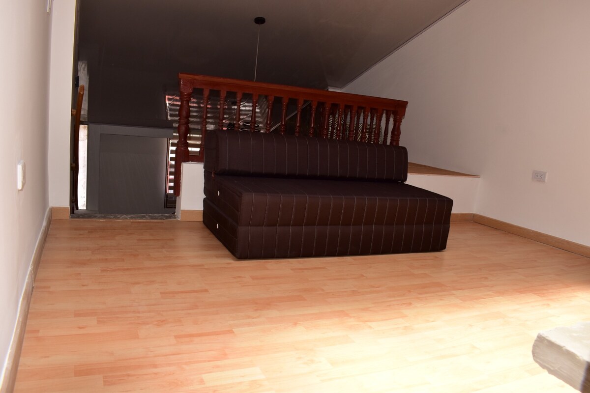 ¡Bienvenido a nuestro apartaestudio loft en Airbnb! Ubicado cerca del encantador Pueblito Boyacense y la bella Paipa, este loft elegante te ofrece una experiencia única. Con iluminación especial y cocina equipada, es perfecto para una escapada tranquila. A solo 5 minutos de todos los pueblitos y sitios culturales. Disfruta de un baño exclusivo y elegante, espacios confortables con sala y televisión, además de internet de alta velocidad. ¡Tu hogar ideal cerca de todo en hermosa Boyacá te espera!