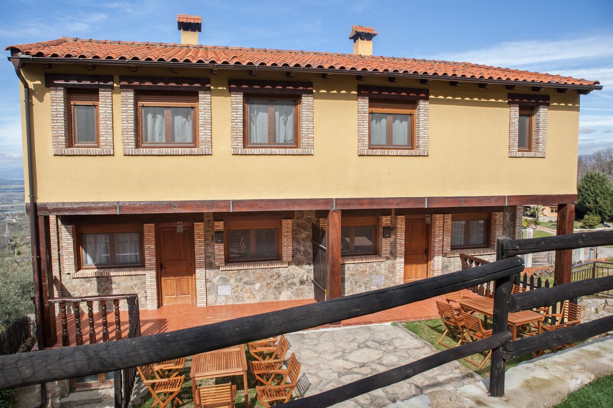 Kaimo namas Jerte slėnyje, trys miegamieji su dvigule lova ir vienvietis vonios kambarys su dušu. Virtuvėje yra pilna atsargų, įskaitant indaplovę. Svetainėje yra malkomis kūrenamas židinys. Sodas ir kepsninė. Wi-Fi. Patalynė ir rankšluosčiai.