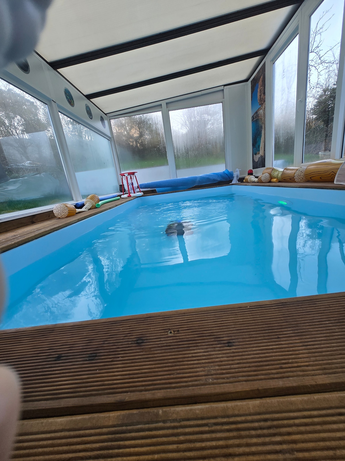 šeimos namelis, šildomas baseinas, sūkurinė vonia.