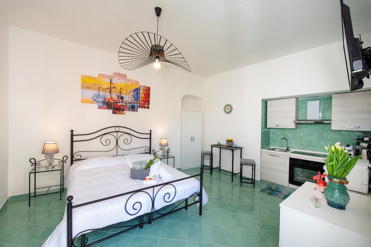Namas su nepriklausomu įėjimu yra „kaimo“ pastato nuo 900-ųjų pradžios dalis. Privatus vonios kambarys, dvigulė lova, sofa-lova, miegamojo šaldytuvas, televizorius, WI-FI ir romantiška veranda su vaizdu į „atviruką“, kurioje galite gurkšnoti gėrimą, įkvėpti, papusryčiauti ar net pasisemti įkvėpimo ir naudoti jį kaip „darbo vietą“. Patekti lengva iš gatvės ar automobilių stovėjimo aikštelės (jei yra), per citrinų sodą, privatų kiemą ir keletą žingsnių.