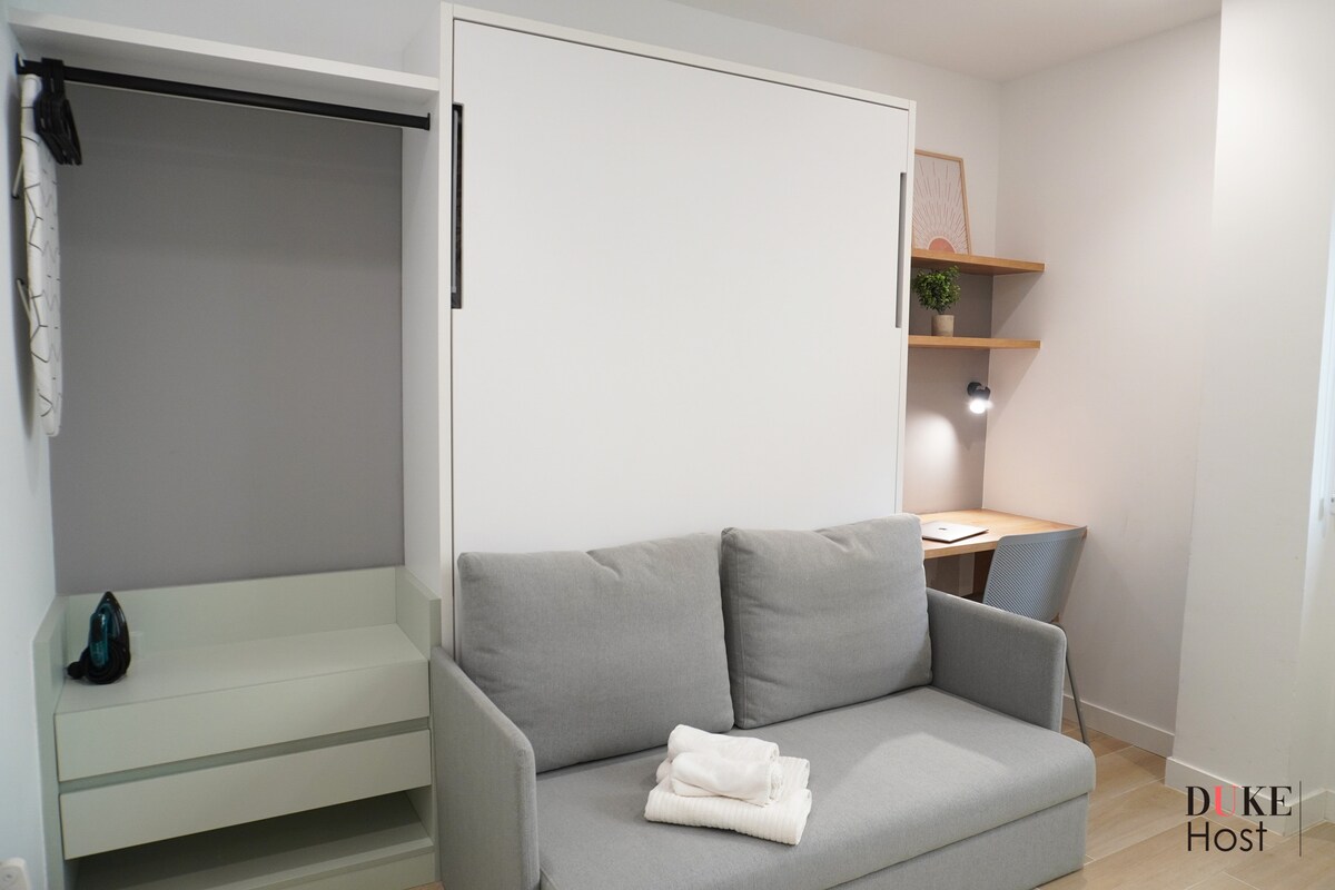 Už kelių metrų nuo Puerta de Alcalá yra šis mažas, bet gražus butas dviem asmenims. Virtuvė, amerikietiška, svetainė ir miegamasis užima tą patį kambarį. *Oro kondicionierius veikia tik vasaros mėnesiais ir bendruomenės nustatytame tvarkaraštyje. PAPILDOMAS MOKESTIS UŽ VĖLYVĄ ATVYKIMĄ NUO 20.00 VAL. * PATIKRINIMO ĮKAINIAI