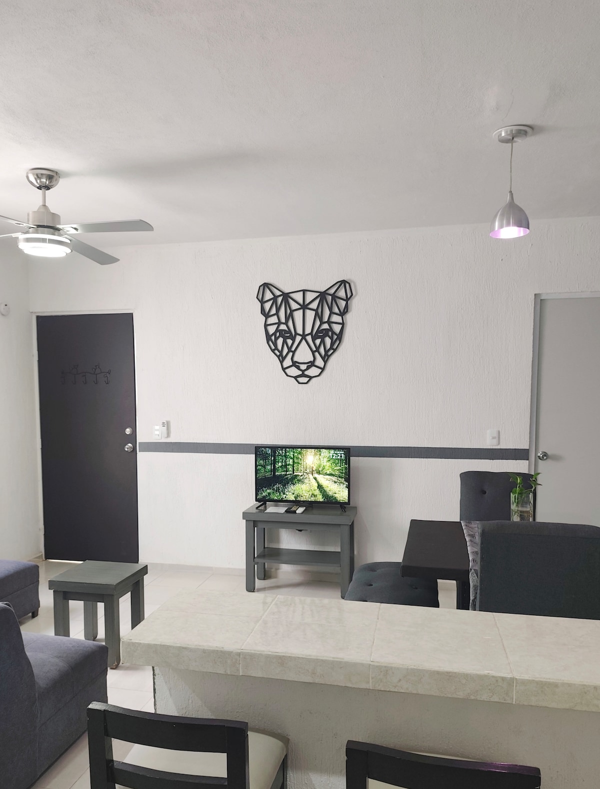 gražus visiškai naujas butas, esantis Amerikos padalinyje, netoli komercinių aikščių, tokių kaip sala, Habor, galerijos, Didžioji aikštė, taip pat įvairūs restoranai rajone, muziejai, eigos uostas ir cenotai, mažiau nei 20 min., prieiga prie viešojo transporto prie įėjimo į butą, idealiai tinka keliautojams, dirbantiems ar atostogaujantiems, yra viskas, ko reikia jaukiai viešnagei.