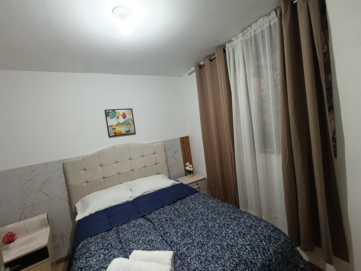 Mėgaukitės šio buto, esančio už 10 minučių kelio nuo oro uosto ir už 5 minučių kelio nuo išsamiausios Arekipos prekybos zonos, kurioje rasite viską, ko reikia, kad viešnagė būtų maloni. Jame yra miegamasis su atskiru vonios kambariu, virtuvė su visais reikalingais prietaisais ir svetainė su ekologišku židiniu, kuris padarys jūsų šaltas naktis šilčiausias.