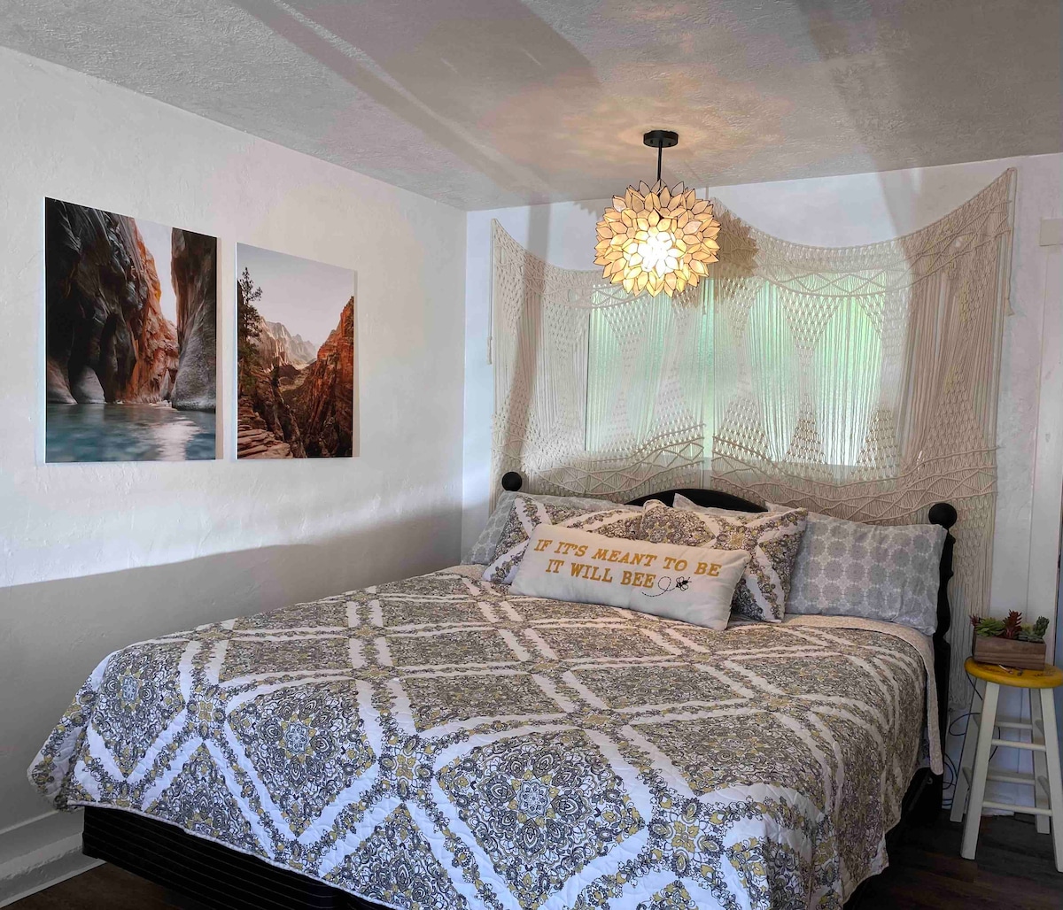 JAUSKITĖS KAIP NAMIE šviesiame, atviro išplanavimo būste, puikiai tinkančiame poilsiui, komfortui ir kokybiškam laikui. - NETOLI Ziono/Braiso/Cedar Break parkų ir Brian Head - NETOLI Šekspyro festivalio ir Pietų Jutos universiteto - Vieno aukšto išplanavimas, lengva prieiga svečiams ir stiprus WI-FI -COFFEE STOTIS ir gerai įrengta virtuvė maisto ruošimui/pramogoms - Puiki vieta pagrindinėje gatvėje už „Wingate Wyndham“. Kelių minučių atstumu nuo I-15 įvažiavimo ir išvažiavimo rampų - CEDAR CITY – puikiai tinka šeimoms, nuotykių ieškotojams ir visiems, norintiems atrasti geriausias Pietų Jutos vietas.