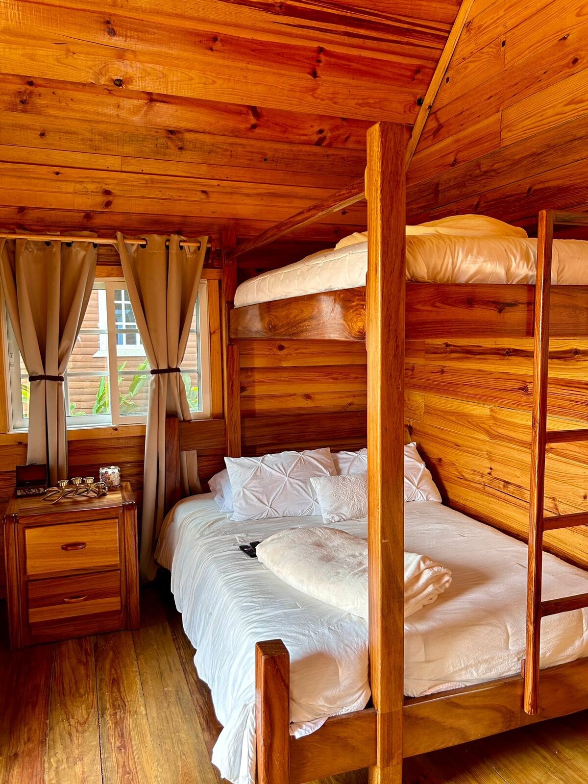 Una cabaña con capacidad para 4 adultos y 2 niños menores de 13 años. Ubicada en un hermoso complejo natural, rodeado de acogedores espacios en medio de un ambiente que te hará olvidarte de la rutina diaria. Cuenta con una cama matrimonial, 2 unipersonales TV y wifi Ducha con agua caliente y las áreas comunes donde podrás sumergirte en la piscina, jacuzzi, preparar tus alimentos en una amplia y equipada cocina. Sin duda es una opción con los espacios adecuados para tener una estadía agradable