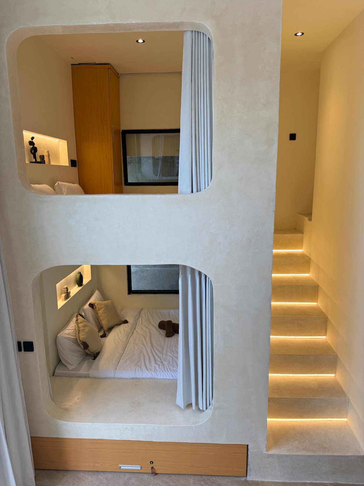 Privatus kambarys su vonios kambariu ir dušu po atviru dangumi su karštu vandeniu, karališko dydžio lova, oro kondicionieriumi ir privačia terasa, pritvirtinta prie kito miegamojo. Įskaičiuoti pusryčiai, visą parą veikianti registratūra ir restoranas vietoje. Įsikūręs netoli visų patogumų: barų, restoranų ir masažo centrų. Be to, pateikę šį užsakymą, gausite nemokamą įėjimą į Xeno Fit sporto salę, esančią vos už 3 minučių kelio motoroleriu.