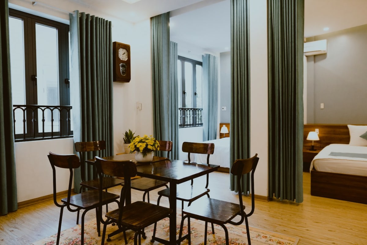 Šiuose dviviečiuose apartamentuose yra 2 butai šalia durų su iš viso 3 dvigulėmis lovomis ir aukštos kokybės patalyne, puikiai tinka didelėms 5-7 žmonių grupėms. Jame yra visi reikalingi patogumai viešnagei su šeima, įskaitant: skalbimo mašiną, virtuvę, balkoną su puikia saulės šviesa ir vaizdu į gatvę - tikrai vietinį potyrį, palyginti su viešbučių kambariais. Butas yra miesto centre: 5 min. nuo Bui Vien Walking gatvės ir netoliese yra daug gatvės maisto prekystalių.