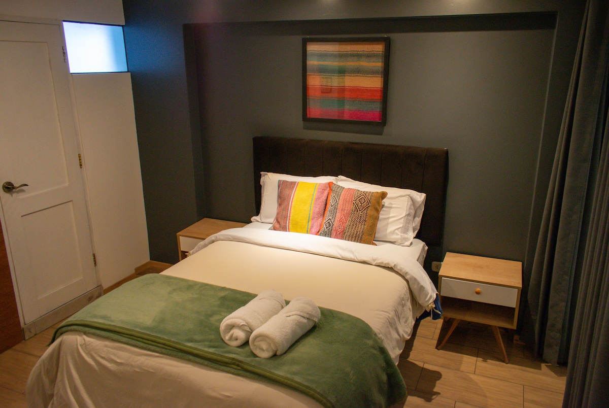 Pilnai įrengta moderni studija su visais namų patogumais ir privatumu, iš kurios atsiveria panoraminis vaizdas į gražų Cusco. Bute yra pilnai įrengtos garsui nepralaidžios durys ir langai, stipriai izoliuotos sienos, užtikrinančios šilumą, užtemdančios užuolaidos, pastovus dujomis maitinamas karštas vanduo, stiprus Wi-Fi ir išmanioji televizija (įskaitant Netflix), kad būtų užtikrintas kokybiškas gyvenimas. Vos už 10-15 minučių kelio pėsčiomis nuo istorinio centro. Vidaus šildymo sistema taip pat už papildomą mokestį.