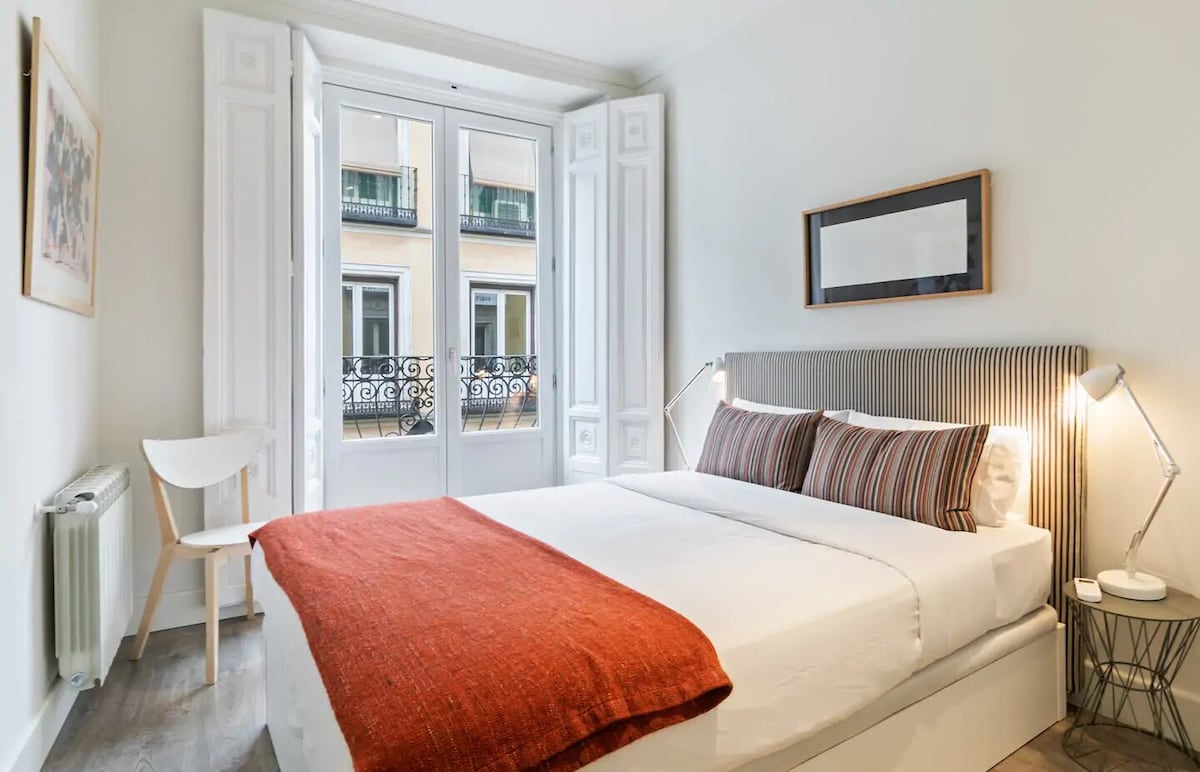 Šiame šviesiame, naujai renovuotame bute yra du miegamieji ir du vonios kambariai. Čia yra graži atviro plano gyvenamoji erdvė su virtuvės ir valgomojo zona. Virtuvėje yra kaitlentė, mikrobangų krosnelė, skalbimo mašina, indaplovė ir kt. Ši vieta idealiai tinka pažinti Madridą pėsčiomis ir yra labai arti judrių Sol, Chueca, Huertas ir Malasaña vietovių, kur pilna puikių dalykų, kuriuos galima pamatyti, ir geriausių barų bei restoranų. Puikus transporto jungtys reiškia, kad jūs galite gauti aplink miestą greitai ir pigiai.