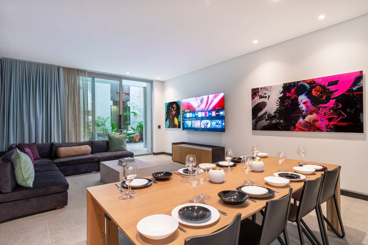 A chic, modern apartment with a big balcony, in the heart of trendy Bree Street, surrounded by top-notch restaurants and just a short walk to all city highlights. Stylishly decorated with all amenities for a super comfortable stay. Perched on the 21st floor, enjoy breathtaking views of the city, Stadium, Robben Island, Signal Hill, and the sparkling sea. Relax on the rooftop terrace with a refreshing drink from the bar. Just a stroll away from the CTICC and the V&A Waterfront. @CapeTown16onBree