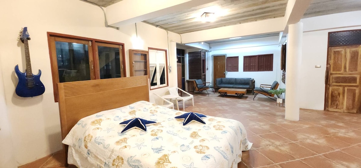 Atsiveskime visą šeimą. Puiki vieta su dideliu, privačiu sodu. Galite miegoti namuose arba norėti stovyklauti sode ir pakeisti atmosferą. Pilnai įrengta virtuvės kepsninė. 50 metrų pėsčiomis iki Wonapha Bangsaen paplūdimio. Nemokama stovėjimo aikštelė daugiau nei 5 automobiliams.