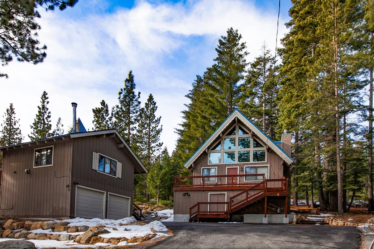 Sveiki atvykę į „Echo View“ poilsio namelį „Modern Mountain Vacations“. Mūsų namai, besiribojantys su mišku, iš jų atsiveria NUOSTABŪS vaizdai ir jie yra unikaliai paslėpti už masyvių riedulių - tobulos Tahoe namų bazės ištisus metus! Pakabinkite su draugais ir šeima ant galinio denio, iš kurio atsiveria vaizdas į mišką ir Talako kalną, kieme pastatykite milžinišką sniego senį ir nueikite iki saldaus lentpjūvės tvenkinio. Pasiruoškite šeimoms! Turime kūdikių vartelius, žaislus, aukštą kėdutę + daug jums paruoštų žaislų vaikams ir knygų. Šunys gavę patvirtinimą!