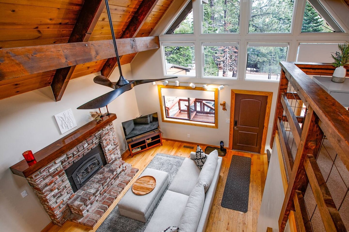 Atnaujinta bavariško stiliaus trobelė Taho vakarinėje pakrantėje. Atsipalaiduokite privačioje sūkurinėje vonioje arba prie židinio su greitu Wi-Fi. Apatiniame aukšte yra svetainė, šildomos vonios kambario grindys ir nauji 2025 m. kilimai. Viršuje: trys miegamieji su plačiomis dvigulėmis lovomis, lofto žaidimų zona, darbo vieta ir skalbykla. Miega septyni; puikiai tinka šeimoms ar poroms vos už kelių minučių nuo Homewood ir už 25 minučių nuo Palisades Tahoe. Mėgaukitės didele terasa, skirta kepsniams ir žvaigždėtoms naktims, taip pat lengvai pasiekiamu ežeru ir slidinėjimo trasomis ištisus metus.