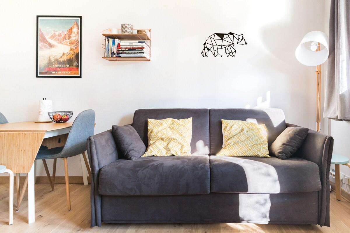 Žavingas butas 5 aukšte su vaizdu į Monblaną pačioje miesto centre. 🛏Miegamasis: labai erdvus su daiktų laikymo vieta ir dvigule lova 160/200 🛋Svetainė: didelė kampinė sofa su išlenktu plokščiu ekranu, garso baru ir nuotaikos apšvietimu. 🛀🏻Vonios kambarys: didelė vonia ir skalbimo mašina/džiovyklė. 🍽Virtuvė: indaplovė, orkaitė, indukcinė viryklė, kavos aparatas Privati automobilių stovėjimo aikštelė ir liftas Idealiai tinka porai arba vienam asmeniui