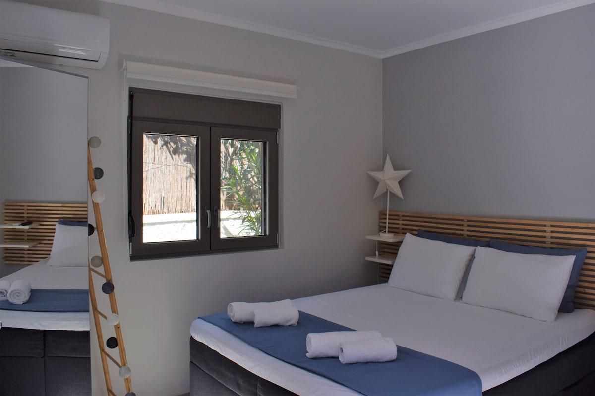 Naujai renovuotas namas netoli miesto centro vos 5 minutės pėsčiomis. Jį sudaro miegamasis su dvigule lova, pilnai įrengta virtuvė su maisto gaminimo indais, virtuvės viryklės, šaldytuvas, katilas, espreso aparatas ir privatus vonios kambarys. Be to, bute yra spinta, televizorius, oro kondicionierius, WiFi, plaukų džiovintuvas, skalbimo mašina ir veranda, pilna gėlių ir medžių.