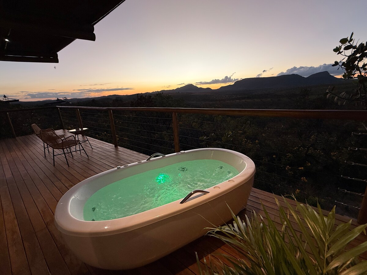 Poilsio namelis Chapada dos Veadeiros širdyje. Puikus vaizdas į gamtą ir saulėlydį. Dažnai matomi laukiniai gyvūnai: tukanai, ara, ropliai, papūgos ir įvairūs kiti paukščiai. Šveicariško stiliaus poilsio namelis, dvigulė lova ir balkonas su hamaku mezonine, pirmame aukšte 2 viengulės/sofos-lovos, vonios kambarys ir įrengta virtuvė. Sraigės laiptams reikia priežiūros, neskirti žmonėms, turintiems judėjimo problemų. Vaikams iki 10 metų draudžiama. Laikykitės augintinių taisyklių ir SKAITYKITE APIE WI-FI.