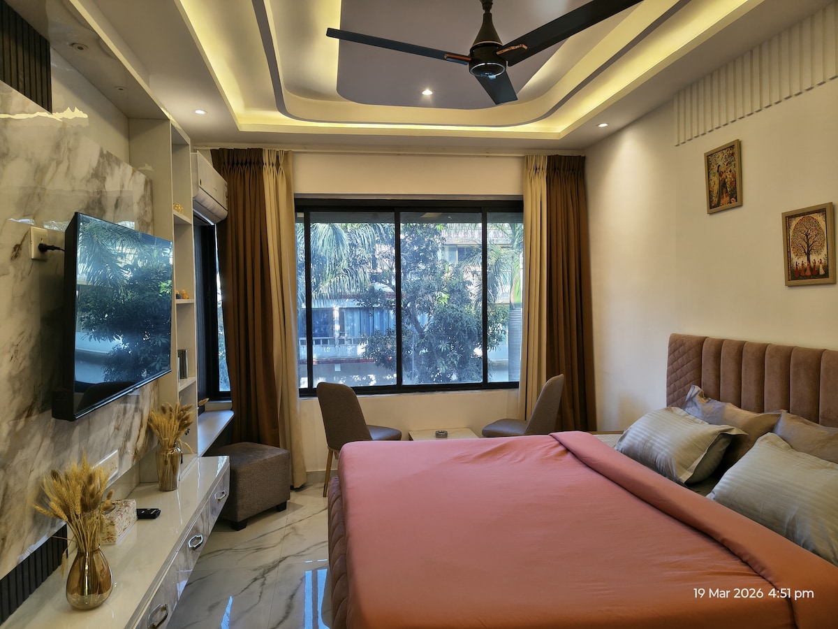 **Jaukus 1BHK butas su privačia sūkurine vonia** Pabėkite į mūsų žavingą 1BHK butą - puikų komforto ir prabangos derinį. Atsipalaiduokite erdvioje gyvenamojoje zonoje, atsipalaiduokite gerai įrengtoje virtuvėje ir atjaunėkite savo privačioje sūkurinėje vonioje. Mėgaukitės moderniais patogumais, stilingu dekoru ir ramia atmosfera vos už kelių minučių kelio nuo vietinių lankytinų vietų. Nesvarbu, ar atvykstate romantiškai išvykai, ar solo poilsiui, šis butas yra ideali jūsų šventovė. Užsisakykite dabar įsimintinai viešnagei!
