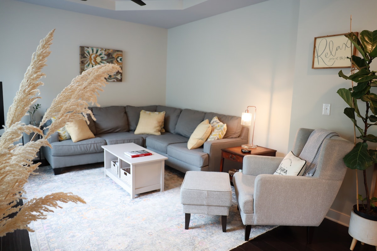 Gerai įrengtas ramus butas su privačiu gerai apšviestu įėjimu puikioje vietoje. Wi-Fi, pilnai įrengta virtuvė, didelis miegamasis (King), patogi svetainė su 50colių HD televizoriumi, atlošai ir ištraukiami (P.B. Queen), visiškai filtruotas vanduo, elektromobilių įkroviklis (ASK) ir saulės energija. Įeina būtiniausi vonios reikmenys, užkandžiai, kava, arbata. Įsikūręs naujame ramiame rajone su nemokama automobilių stovėjimo aikštele, nedideliu privačiu parku, trumpu pėsčiomis iki pėsčiųjų prekybos centro ir IX parko - restoranų, parduotuvių, muzikos ir teatrų. 10 minučių kelio automobiliu iki UVA ir Monticello.