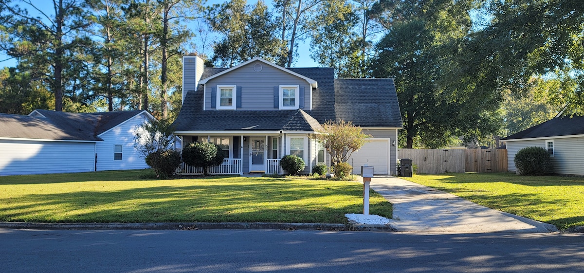 Coastal inspired home close to the Iconic City of Savannah and Tybee beach. Comfortably sleeps 7, so bring the extended family! Large private yard with screened patio. Yard games. Beach towels and chairs available for use at Tybee Beach. Safe, quiet neighborhood. Playground and Farmers Market just steps away! Historic Monuments, Beach access, and the Savannah food scene Five minutes to restaurants, bars, Putt-Putt, and grocery stores. 12 minutes to explore Savannah downtown or Tybee Island