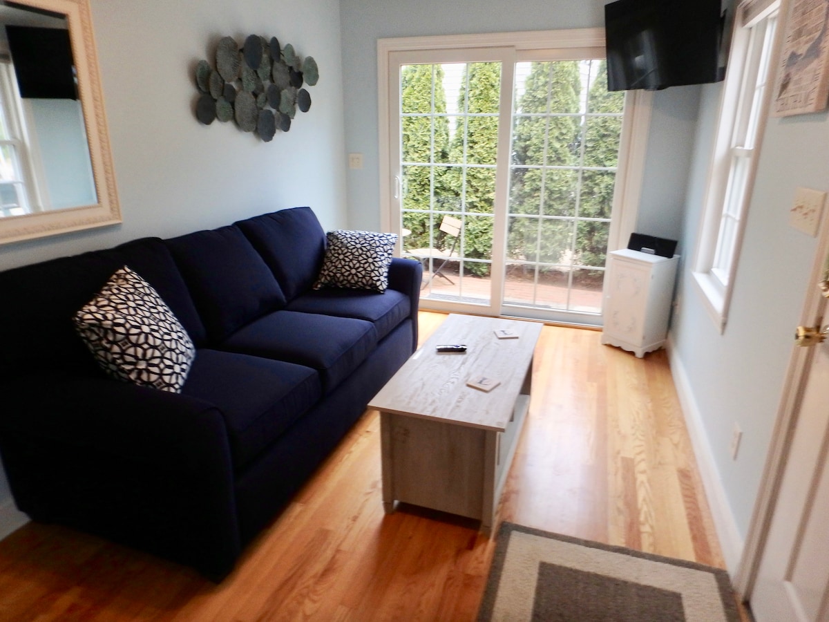 1 kambario butas yra priešais Bass River golfo aikštyną ir centrinį paplūdimių, pėsčiųjų takų, Cape Cod Rail tako, baidarių ir nuostabių restoranų. Šis buvęs butas yra prijungtas prie mūsų namų. Norime jus užtikrinti, kad mūsų butas būtų kruopščiai išvalytas ir dezinfekuotas, kad būtų lengviau apsaugoti svečius. Maksimalus svečių skaičius - 2 (su šeimininku aptartos išimtys) **Jei mano kalendoriuje vasaros mėnesiais laisvos tik 2 naktys, pasiteiraukite, ar yra galimybė užsisakyti.