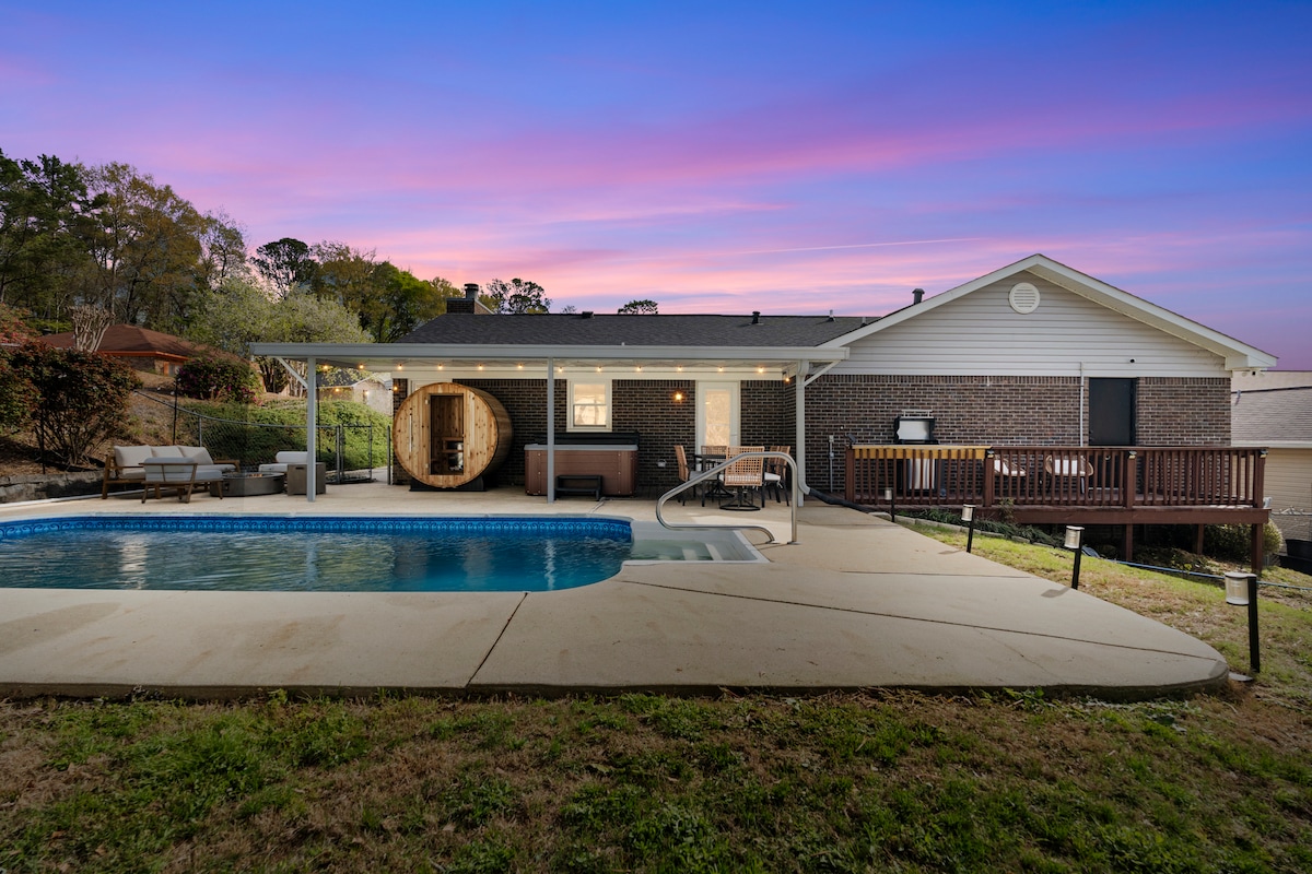 ✨ Sveikiname atvykus į prabangią viešnagę su privačiu baseinu, 2 pagrindiniais miegamaisiais, erdviomis svetainėmis, žaidimų kambariu ir erdve visai šeimai, iki 14 svečių. Vos už kelių minučių nuo Fort Benning ir Kolumbijos valstijos universiteto, tai puikiai tinka išleistuvėms, vestuvėms ar vasaros atostogoms. Šiuose stilinguose namuose patogiai, smagiai ir ramiai gali ilsėtis įvairaus dydžio grupės. Sukurkite ilgalaikius prisiminimus su šeima ir mėgaukitės atostogomis be streso – užsisakykite savo kelionę jau šiandien!