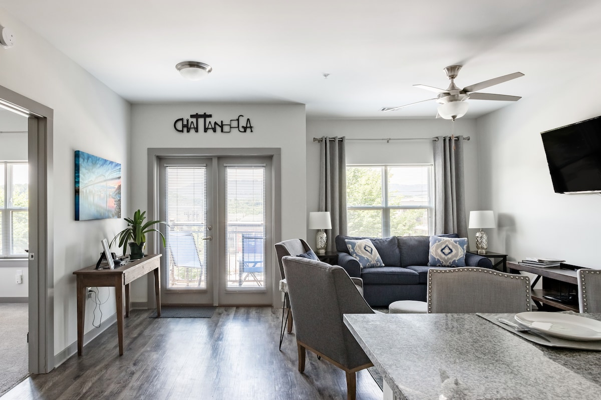 Šis erdvus modernus butas puikiai tinka profesionalams, šeimoms, poroms ir asmenims. - 5 min. kelio automobiliu iki miesto centro. - Tik rugpjūčio mėnesio programėlė/išmanusis telefonas - Didelės spartos internetas - šviesolaidis - Skalbyklė ir džiovyklė - Youtube TV - įrašyti neribotą laiką Iki: - Nuožulnus geležinkelis - Žygiai pėsčiomis - Laipiojimas uolomis - Pasivaikščiojimas upe - bėgimas, važiavimas dviračiu - Buchanan kirpykla - Taikos jėgos joga - Goodman's Coffee - 1885 m. Restoranas - Palieskite Namas. - Pono T's Pizza - Clumpies Ice Cream