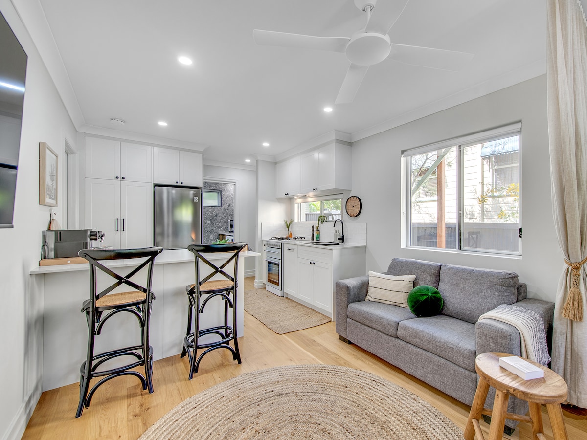 Sveiki atvykę į jūsų privačią šventyklą ramiame, lapuotame šeimos priemiestyje! Turėsite visą pirmąjį aukštą turėsite atskirą įėjimą pro prancūziškas duris. Erdvė yra maža, bet patogi ir atskira, joje yra išmanusis 4K televizorius, prie kurio galite prisijungti prie „Netflix“ arba „Stan“ paskyros. Mano namai buvo pastatyti 1952 m., vos už kelių žingsnių nuo kavinių, traukinių ir autobusų. Ateikite ir atsipalaiduokite savo jaukiame prieglobstyje, mėgaudamiesi patogumu būti beveik viskuo, ko reikia.