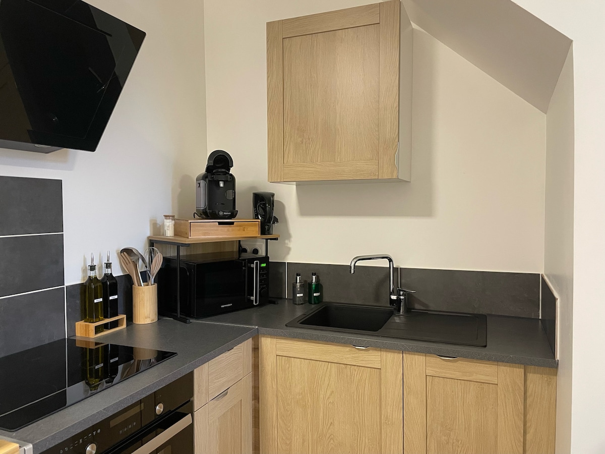 Gražus butas antrame XIX a. dvaro aukšte, šimtmečio senumo parko širdyje, kurį rekomenduoja Le Petit Futé. Užburiantis anklavas miesto centre, mažiau nei už 5 minučių kelio pėsčiomis nuo traukinių stoties ir turizmo centro. 2 miegamieji, labai erdvūs, kiekviename iš jų yra 160 x 200 lova ir rašomasis stalas. Didelė sofa siūlo penktą lovą. Pilnai įrengta virtuvė, atvira svetainei, yra ideali svetainė, kurioje galite mėgautis nuoširdžiais pusryčiais ir pusryčiais.