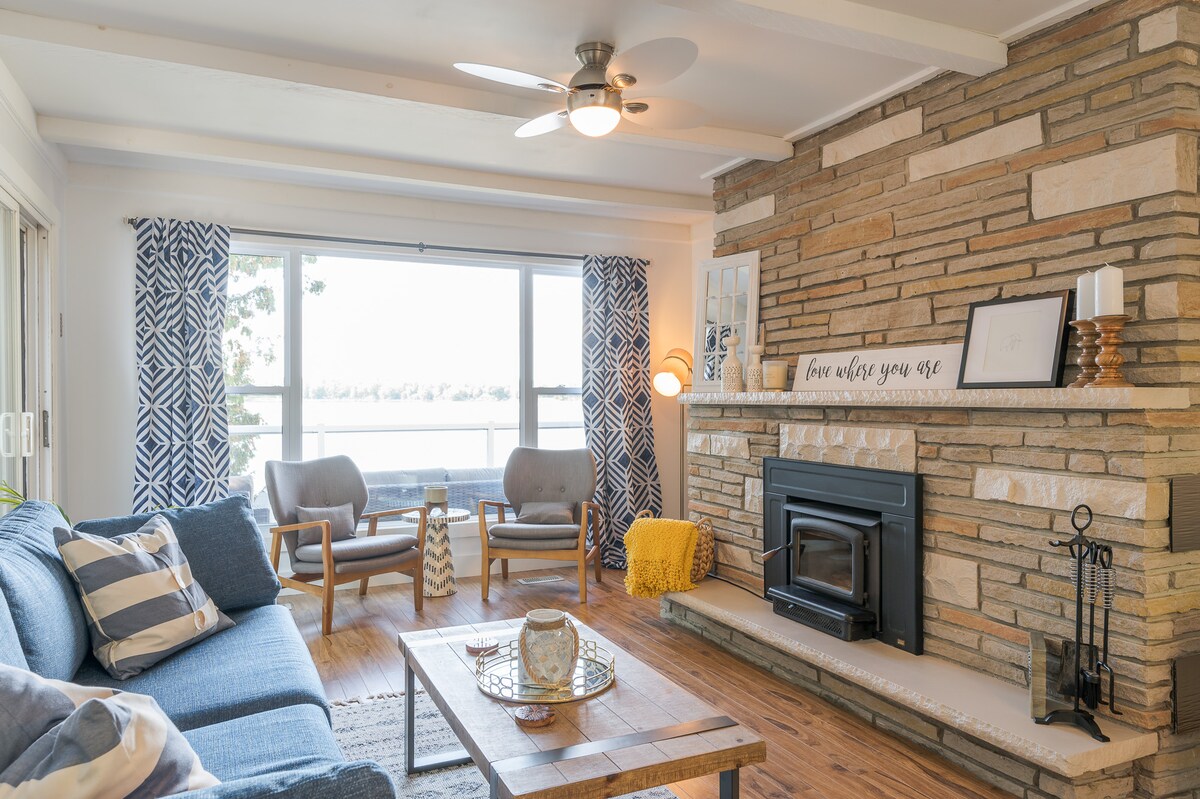 SVEIKI ATVYKĘ Į KE BŪSTĄ! Šiame VISIEMS METŲ LAIKAMS pritaikytame kaimiškame privačiame 4 sezonų kotedže prie Pigeon ežero yra 3 miegamieji, 3 dvigulės lovos, didelė šviesi svetainė su moduline sofa-love, neseniai atnaujinta virtuvė, dvi didelės terasos, privati prieplauka, židinys patalpoje, uždaras vidinis kiemas, lauko laužavietė, didelis kiemas žaidimams ir dar daugiau. Šis kotedžas, esantis maždaug už 1,5 valandos kelio nuo Toronto, yra puiki vieta šeimoms ir draugams pabėgti nuo šurmulio, atsipalaiduoti ir pailsėti.