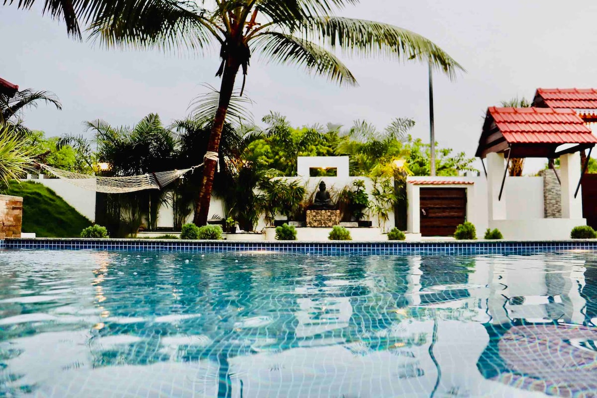 Mėgaukitės prabangia viešnage mūsų gražioje viloje, kurioje yra privatus baseinas ir ramus vandens fontanas. Mėgaukitės ramybe ir ramybe žavėdamiesi Budos statula ir lotoso tvenkiniu. „10 minučių kelio automobiliu“ nuves jus į nuostabų paplūdimį, o pliušinis sodas ir pavėsinė siūlo vaizdingą aplinką atsipalaiduoti. Su aukščiausios klasės patogumais ir skoningais dekorais mūsų vila žada atgaivinantį kasdienio gyvenimo šurmulį.