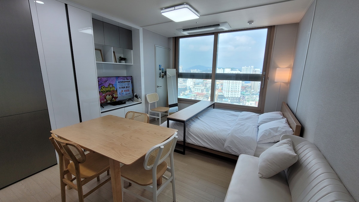 - Dvigulė lova, 42 colių televizorius, atlošas, didelės spartos internetas, Netflix, skalbimo mašina, elektrinis virdulys, mikrobangų krosnelė, virtuvės reikmenys, džiovyklė, belaidis dulkių siurblys. - Gyvenamojoje erdvėje yra restoranai, atmosferos kavinės, barai, būtiniausių prekių parduotuvės, kino teatrai, knygynai, Daiso, golfo aikštynas, kompiuterių kavinės, biliardas, arkadiniai kambariai, skalbyklos, bankai, ligoninės ir vaistinės. - Netoliese yra Hanam Starfield, Emart Traders, Costco ir Novelty. - Prieiga prie didelės skalbyklės, netoliese esančios džiovyklės. - Atvykimo laikas - 15 val., išvykimo laikas - 11 val. - Jei norite atvykti anksčiau arba išvykti vėliau, galite jį naudoti už mokestį. (Pateikite užklausą.) - Gali apsistoti iki 2 suaugusiųjų, be pervežimo - Sulankstoma spyruoklinė supervienvietė gali būti skirta 1 papildomam asmeniui (papildomai 20 000 KRW už naktį) - Ši erdvė yra trumpalaikės nuomos erdvė, o ne būstas, o patogumai ar asmeninės higienos priemonės neteikiamos. - Kai sutartis bus patvirtinta, apie tai jus informuosime atskirai tą dieną, kai persikelsite į kambarį.