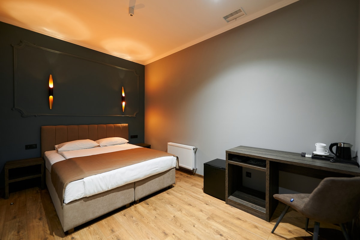 Ilgalaikei nuomai siūlomi nauji viešbučio kambariai. Kambariuose yra viena dvigulė arba dvi viengulės lovos ir visi būtini wi-fi, privatus vonios kambarys, oro kondicionierius. Gražus vaizdas į Kijevą. Vietoje yra restoranas (kambarių aptarnavimas). Galimos skalbimo paslaugos (už papildomą mokestį). Šalia viešbučio yra prekybos centrai, turgus, kavinės, restoranai, vaistinės, sporto salė.