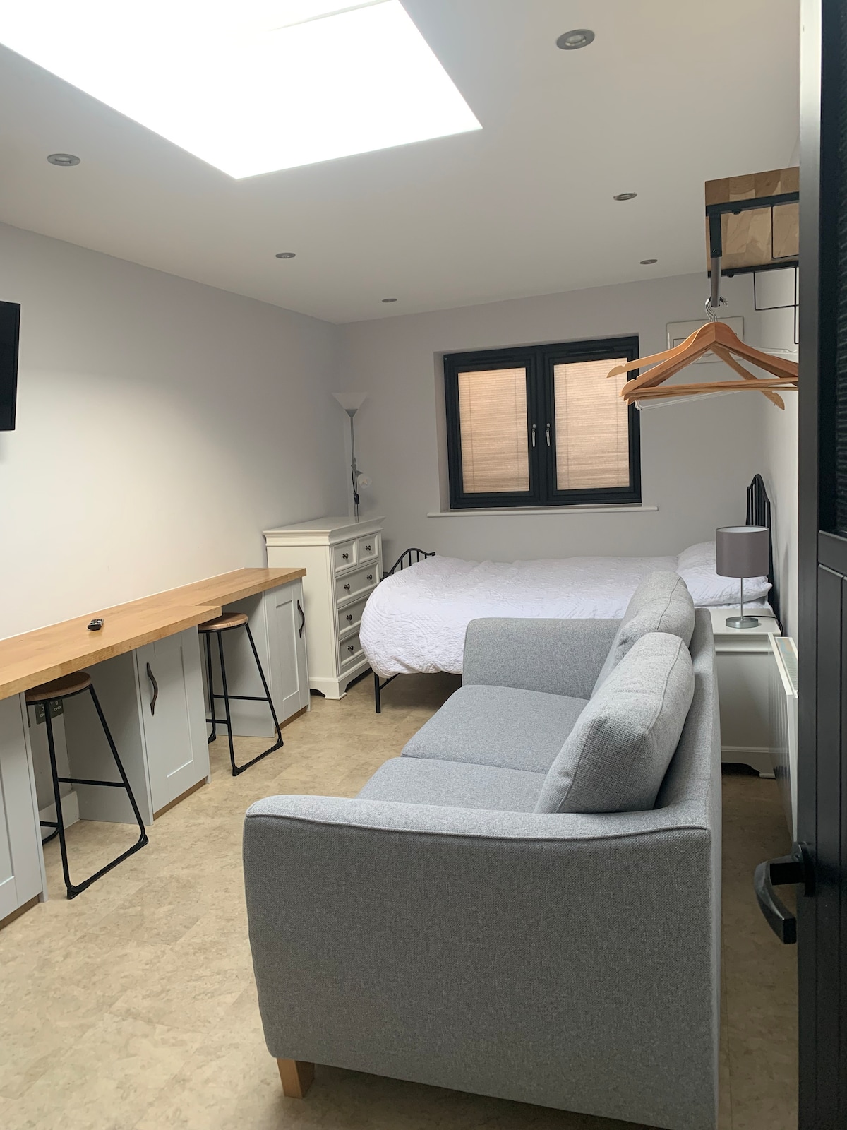 Sveiki atvykę į mūsų jaukią studiją Kembridže, kur modernus komfortas susitinka su žavinga miesto atmosfera. Ši stilinga erdvė, esanti vos už 15 min. kelio nuo triukšmingo miesto centro, siūlo ramų poilsį ir ramybę. Mėgaukitės vakarais atsipalaiduodami su Netflix naudodami mūsų išmanųjį televizorių arba rytine kava mėgaudamiesi ramia aplinka. Į jūsų viešnagę įeina nemokamas dviratis, kuris yra ikoniškas būdas pažinti miestą!