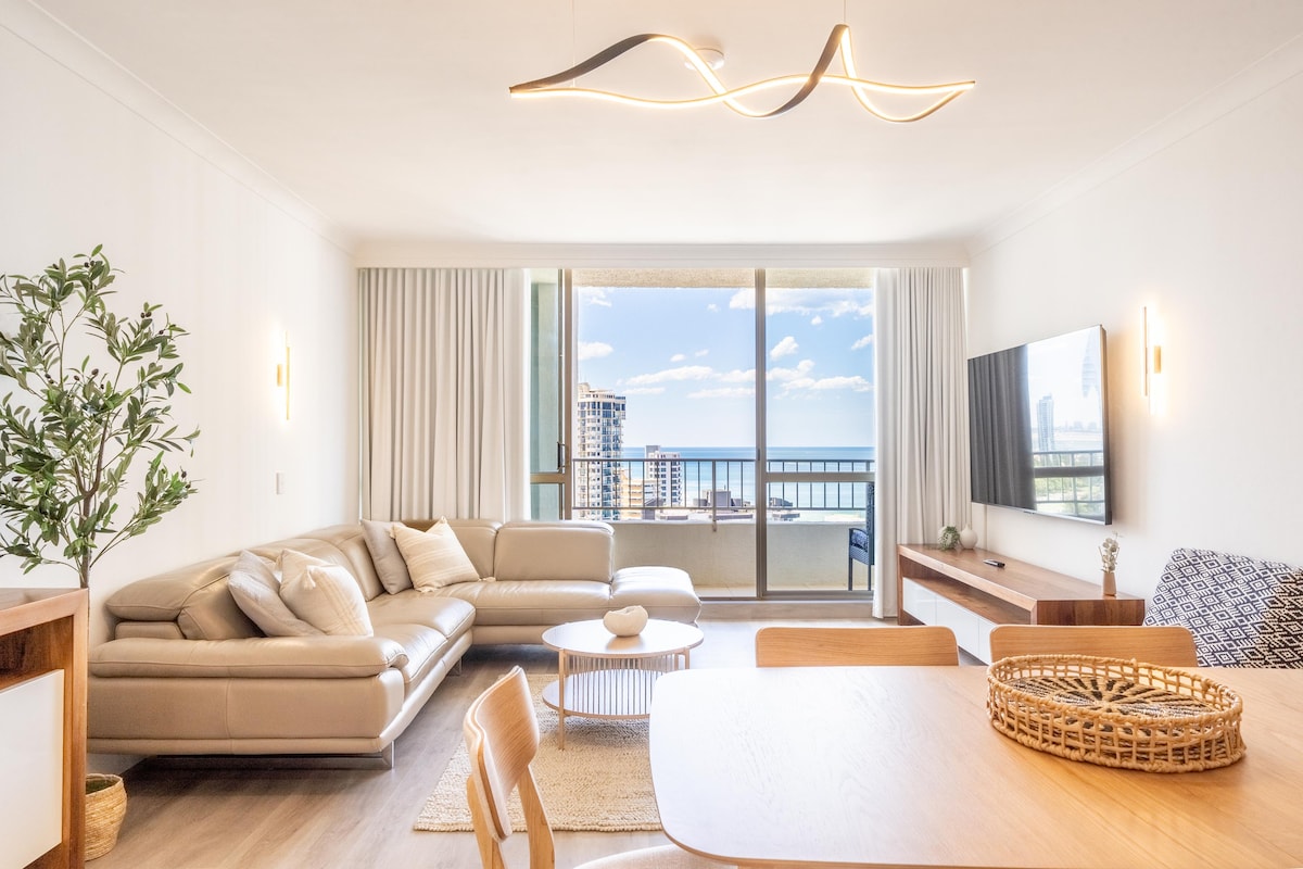 Paplūdimio butas, esantis aukštame aukšte, su langais nuo grindų iki lubų, privačiu balkonu su vaizdu į vandenyną ir prieiga prie Surfers Paradise paplūdimio, esančio kitoje kelio pusėje. Bute yra karališko dydžio lova miegamajame, o poilsio kambaryje - sulankstoma dvigulė sofa-lova. Pilnai įrengta virtuvė, didelės spartos Wi-Fi, oro kondicionierius, televizoriai su „Netflix“ ir „YouTube“, nemokama automobilių stovėjimo aikštelė ir visa privati skalbykla. Svečiai gali naudotis sporto sale, SPA, sauna, baseinu ir Kepsninės prie baseino ir ant stogo terasos.