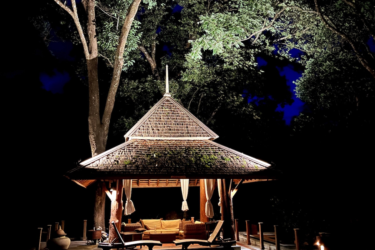 Nuostabi ir erdvi privati kalnų vila, pastatyta iš auksinio tikmedžio, esanti apdovanojimus pelniusios ekologiškos kavos ir arbatos plantacijos viduryje, pilnai įrengta su moderniais patogumais, išsaugant tradicinius Tailando architektūros stilius. Svečiai galės naudotis pagrindiniu liukso numeriu, svetaine ir lauko paviljonu. Įskaičiuoti pusryčiai. Mėgaukitės atpalaiduojančia diena mūsų DoiMek viloje, tyrinėkite netoliese esančius pėsčiųjų takus su nuostabiais vaizdais arba tyrinėkite kalvų genties kultūras netoliese esančiuose kaimuose.