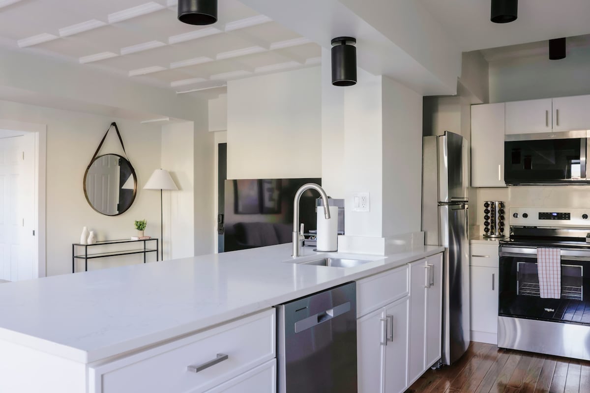 Mėgaukitės stilingu potyriu šiame centre esančiame būste! ✨🏙️ Stulbinantis 1000 kv. pėdų modernus 2 miegamųjų, 2 vonios kambarių kambarys - puikiai tinka verslo keliautojams ir šeimoms, ieškančioms stilingo pabėgimo Čikagos centre. 🔥 Terasa ant stogo su kepsnine 🚗 Nemokama įėjimo/išėjimo automobilių stovėjimo aikštelė (5 min. pėsčiomis iki garažo) 🏠 2 miegamieji | 2 vonios kambariai 🛏️ 2 dvigulės lovos ir miegamoji sofa (sofa-lova - 1 miegamasis) 🛌 2 pripučiami pripučiami čiužiniai 👶 Nešiojama lovelė (mini kelionių kompanionui) Įtraukta 🎬 „Netflix“, „Hulu“, „Disney+“ ir „Prime“