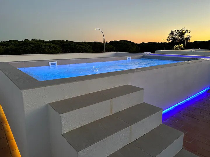 Atraskite savo idealius namus Pinar del Eden - naujai pastatytuose atostogų namuose, kuriuose dera prabanga, komfortas ir puiki vieta nepamirštamoms atostogoms. Naujas namas su privačiu baseinu, funkcine sporto sale ir jaukia laužaviete. Vos už 4 km nuo Playa de la Barrosa ir Čiklanos centro. Netoliese yra tokių patogumų kaip McDonald 's, savitarna, degalinė ir restoranai. Šie namai alsuoja ramybe: atsipalaiduokite su visa šeima! Rezervuokite dabar!