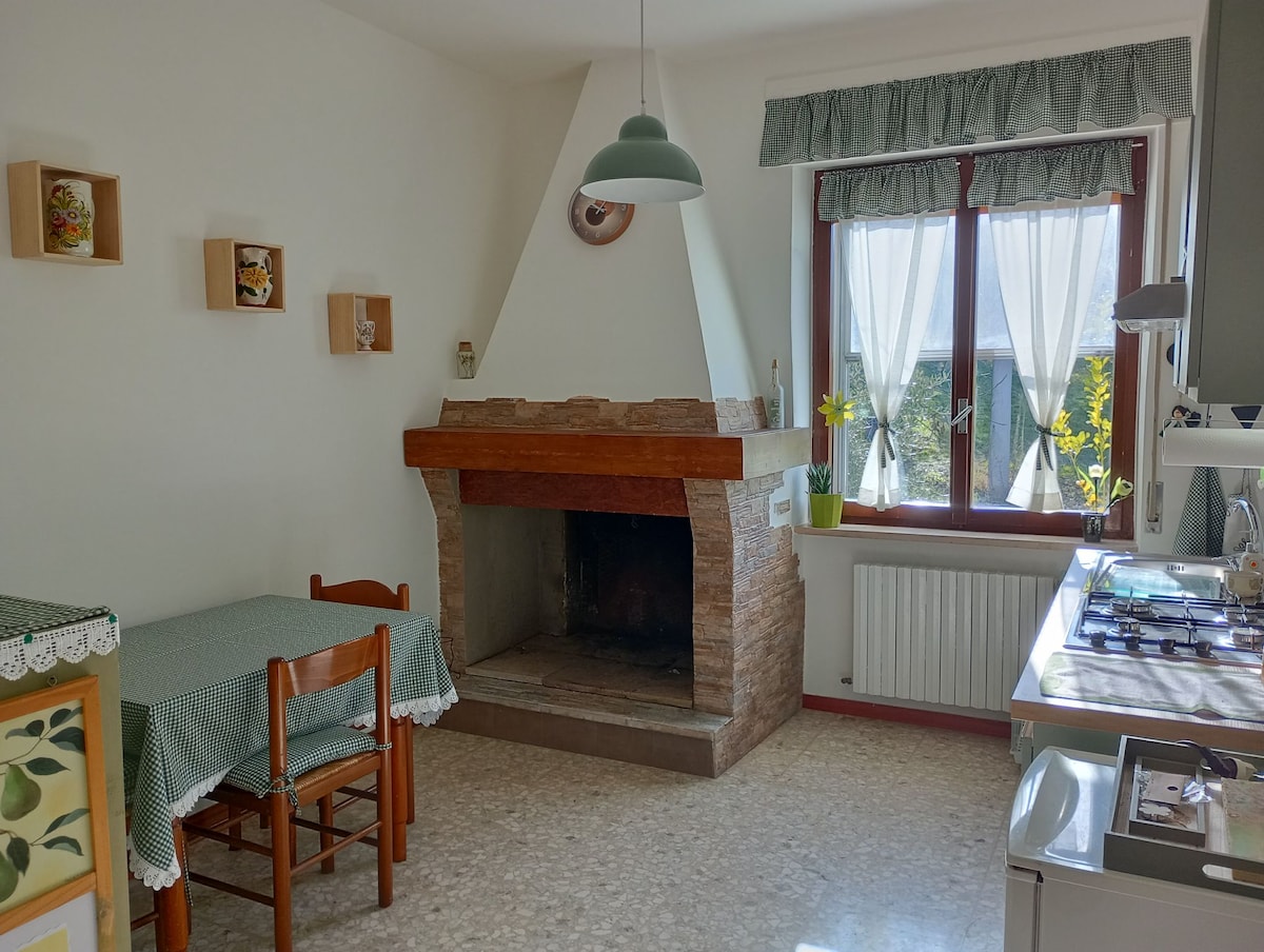Nuovi servizi extra: colazione in appartamento e prenotazione cena in appartamento. Elegante Casale in pietra nel Parco della Majella, affaccia sul bosco di 80 mq,al piano rialzato, ristrutturato da poco , è molto fresco nel periodo estivo, mentre in inverno i termosifoni riscaldano velocemente tutti gli ambienti. Finestre dotate di zanzariere . Interni sono molto curati , puoi rilassarti in salotto e consultare una fornita biblioteca per conoscere il territorio .