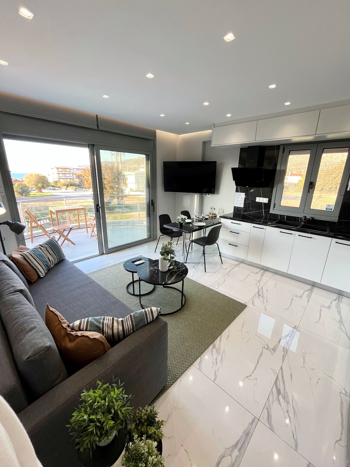 Vos už 100 metrų nuo organizuoto paplūdimio, mūsų butai idealiai tinka šeimoms su vaikais ir poroms. Mėgaukitės jūra smėlio paplūdimyje ramioje ir saugioje aplinkoje. Puiki vieta, vos už 10 minučių kelio nuo senovės Korinto ir Korinto kanalo bei mažiau nei valandos kelio nuo senovės Epidauro ir Atėnų teatro - tai puiki vieta atsipalaiduoti ar tyrinėti.