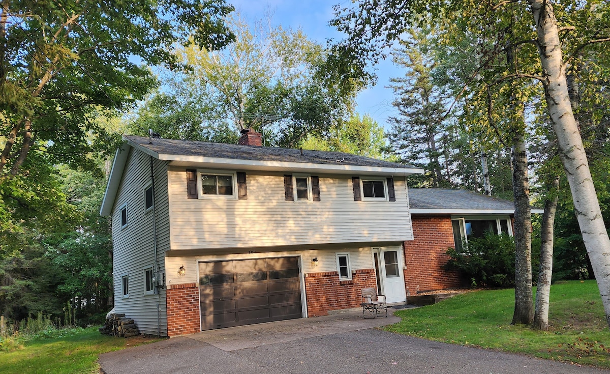 Nestandartinė rąstinė trobelė miške vos už 15 minučių kelio nuo Marquette centro. Rami vieta, tačiau pakankamai arti, kad galėtumėte mėgautis parduotuvėmis, restoranais ir paplūdimiais. Puikus vaizdas į Kawbawgam ežerą iš terasos (nėra prieigos prie ežero). 40 minučių kelio automobiliu iki Paveikslėlių uolų. Galima naudoti laužavietę kieme ir židinį svetainėje. Apatiniame aukšte yra baras su televizoriumi ir žaidimų kambarys su stalo teniso stalu ir smiginio lenta. Puiki vieta šeimoms ir sniegaeigiams!